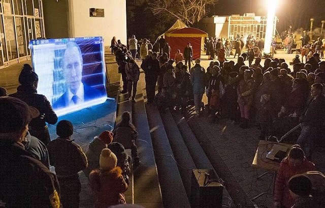 В сети умиляются фото со смотрящими на Путина в темноте крымчанами