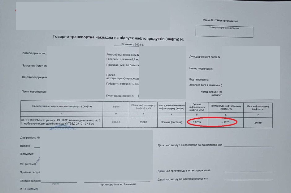 Согласно ТТН, температура отгружаемого ДТ 7 февраля 2024 года составляла 170С, тогда как обычно температура топлива на несколько градусов выше температуры воды. На момент отгрузки, 6 февраля, температура воды в Чёрном море составляла чуть выше 30С.