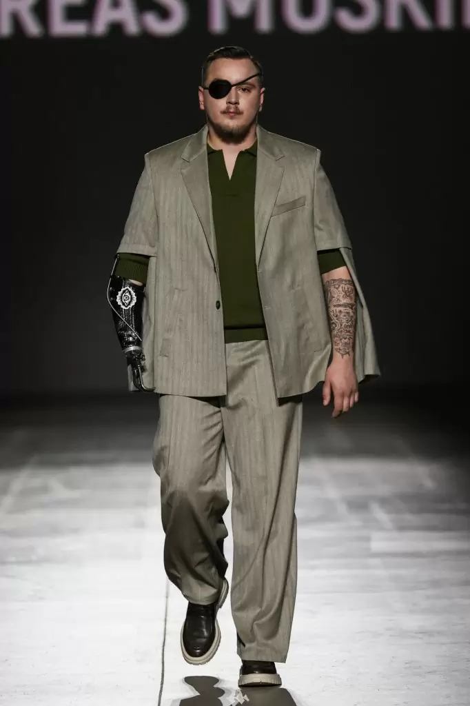 Кроме того, дизайнеры решили создать образы, адаптированные для мужчин с протезами рук и ног. Рукава пиджака снимаются с помощью незаметной застежки, а на внутренних боковых швах брюк тоже есть застежки, помогающие носителю быстро одевать или снимать протез.
