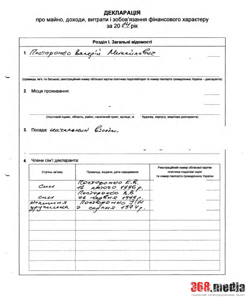 Супруга Посторонко также владеет двумя домами (297 и 46 кв. метра), квартирой (51 кв. метр) и другим имуществом (124,1 кв. метра). Также у его бывшей жены есть Ford Fiesta 2013 года.