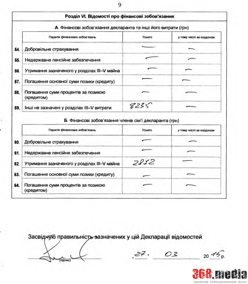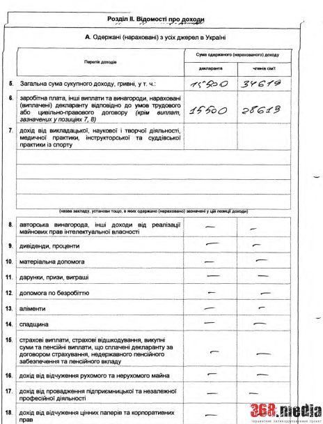 В 2014 году, чиновник, воспитывая сына и дочь вместе с разведенной супругой, заработал всего лишь 15,5 тыс. гривен! Его экс-жена смогла достать 34 тыс. гривен, из которых шесть тысяч гривен она получила от аренды имущества.