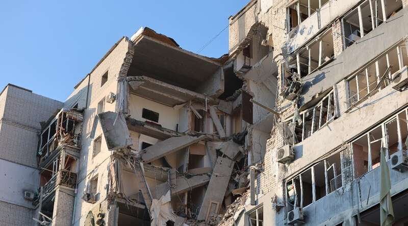В городе Херсон спасатели остановили разбор завалов после российского удара из-за опасности повторных атак.