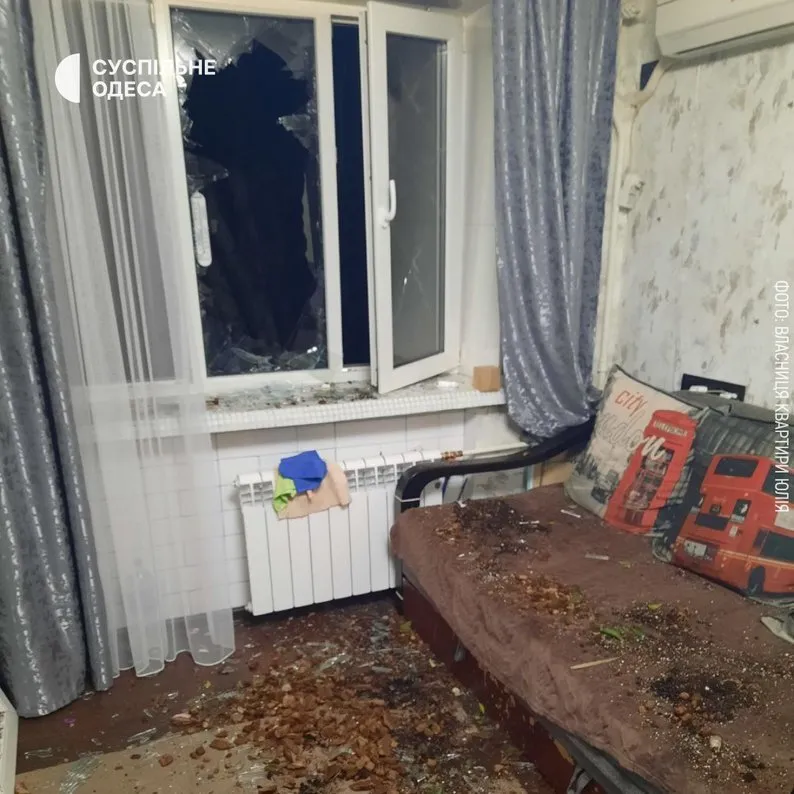Жительница Одессы госпожа Галина рассказала журналистам, что уже второй раз их дом пострадал в результате атаки российских дронов. Когда начались взрывы, женщина спустилась вниз на первый этаж.