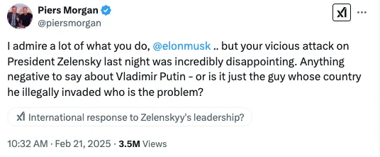 Теги: Пирс МорганСШАтелеведущиетелеведучіЗеленскийИлон Маск