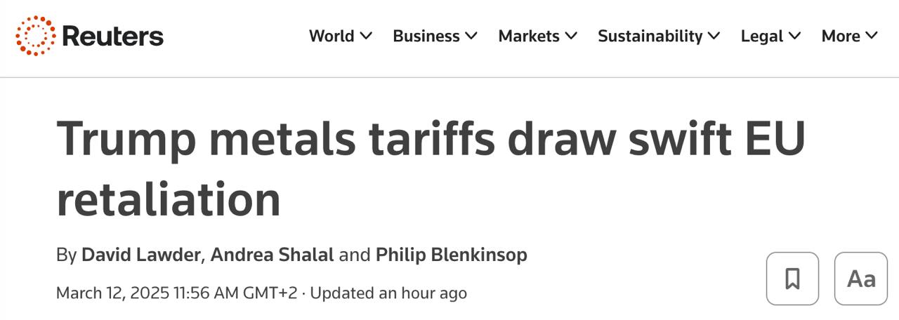 Как пишет Reuters, ответные пошлины ЕС на американские товары "чаще будут иметь символическое значение, нежели экономическое".