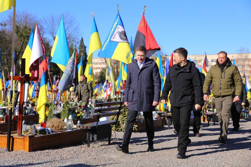 Зеленский вместе с руководством Львовской ОВА посетил Лычаковское кладбище, где почтил память всех воинов, которые отдали жизнь в российско-украинской войне.