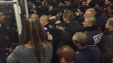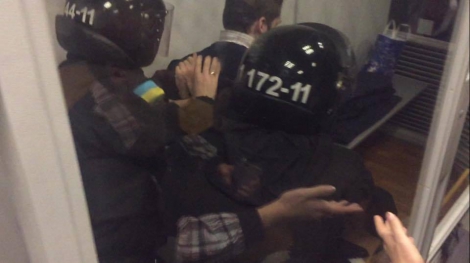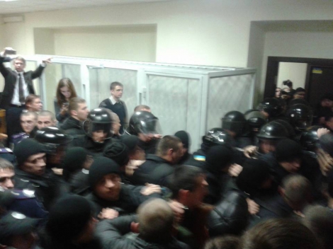 До зали зайшло понад 30 співробітників міліції у повному обмундируванні. Їм вдалося забрати підозрюваного для конвоювання в автозак.
