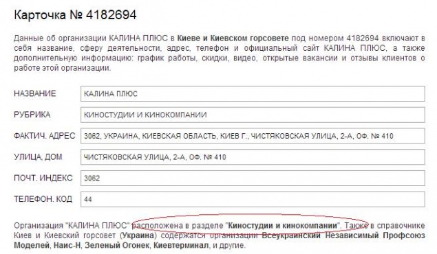 Кроме того, в справочнике предприятий Украины информация о конторе помещена в разделе «Киностудии и кинокомпании».