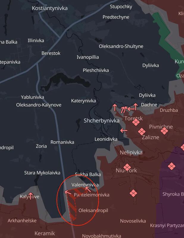 Российские войска продолжили продвижение в юго-западном направлении от Торецка, на участке, где они продолжают наступательные действия уже несколько дней.