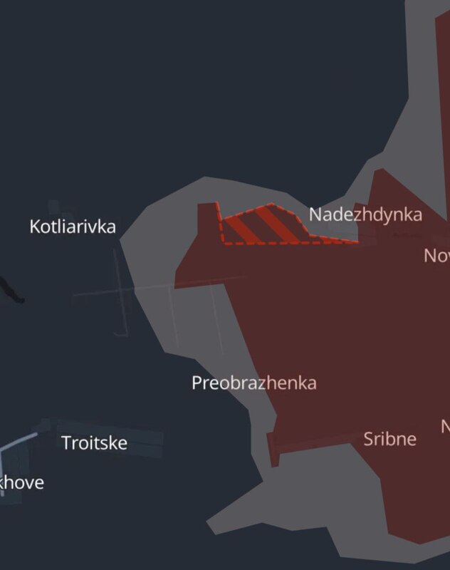 Российская армия продвинулась возле Надиевки (западный край выступа, южнее Покровска) и в районе Сухой Балки (южнее Торецка).