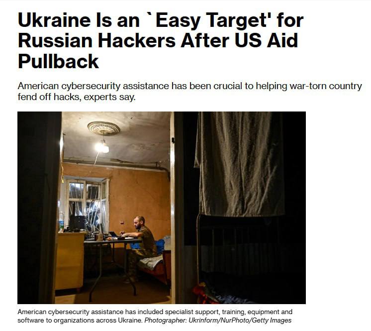 Украина стала более уязвимой к кибератакам России из-за сокращения помощи США, — Bloomberg