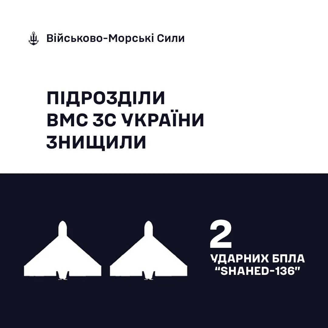 На юге Украины дроновую атаку отбивали бойцы ВМС ВСУ вместе с подразделениями других компонентов Сил обороны. В результате боевой работы было уничтожено 2 дрона-камикадзе.