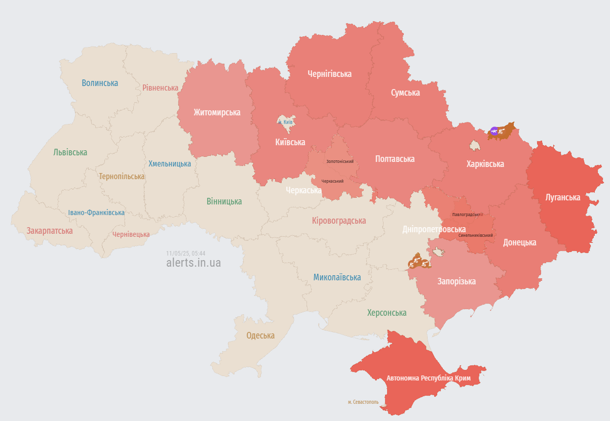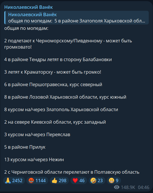 Сначала угроза появилась около 3:00 ночи для Донецкой, Днепропетровской и Запорожской областей. Спустя некоторое время оккупанты начали атаковать БпЛА Черниговскую и Сумскую области.