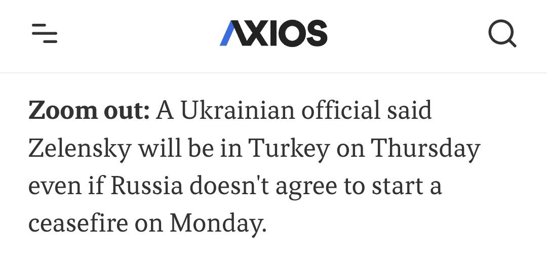 «Украинский чиновник заявил, что Зеленский прибудет в Турцию в четверг, даже если Россия не согласится начать прекращение огня в понедельник», — пишет издание.