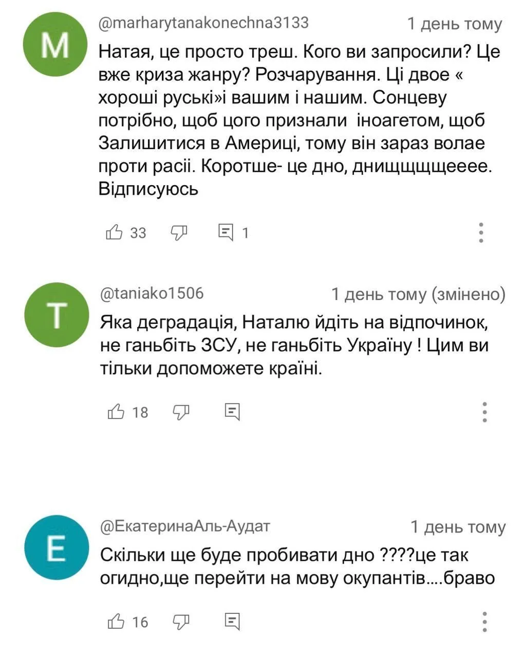 Пользователи Сети не были в восторге от гостей, которых Наталья Мосейчук решила пригласить на интервью и осветить в украинском инфопространстве. Под её видео появилось много негативных комментариев: