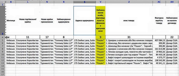 В украинской таможенной базе торговой страной числится Великобритания, а компанией-получателем продукции указана не туркменская компания, куда идет продукция, а британская.
