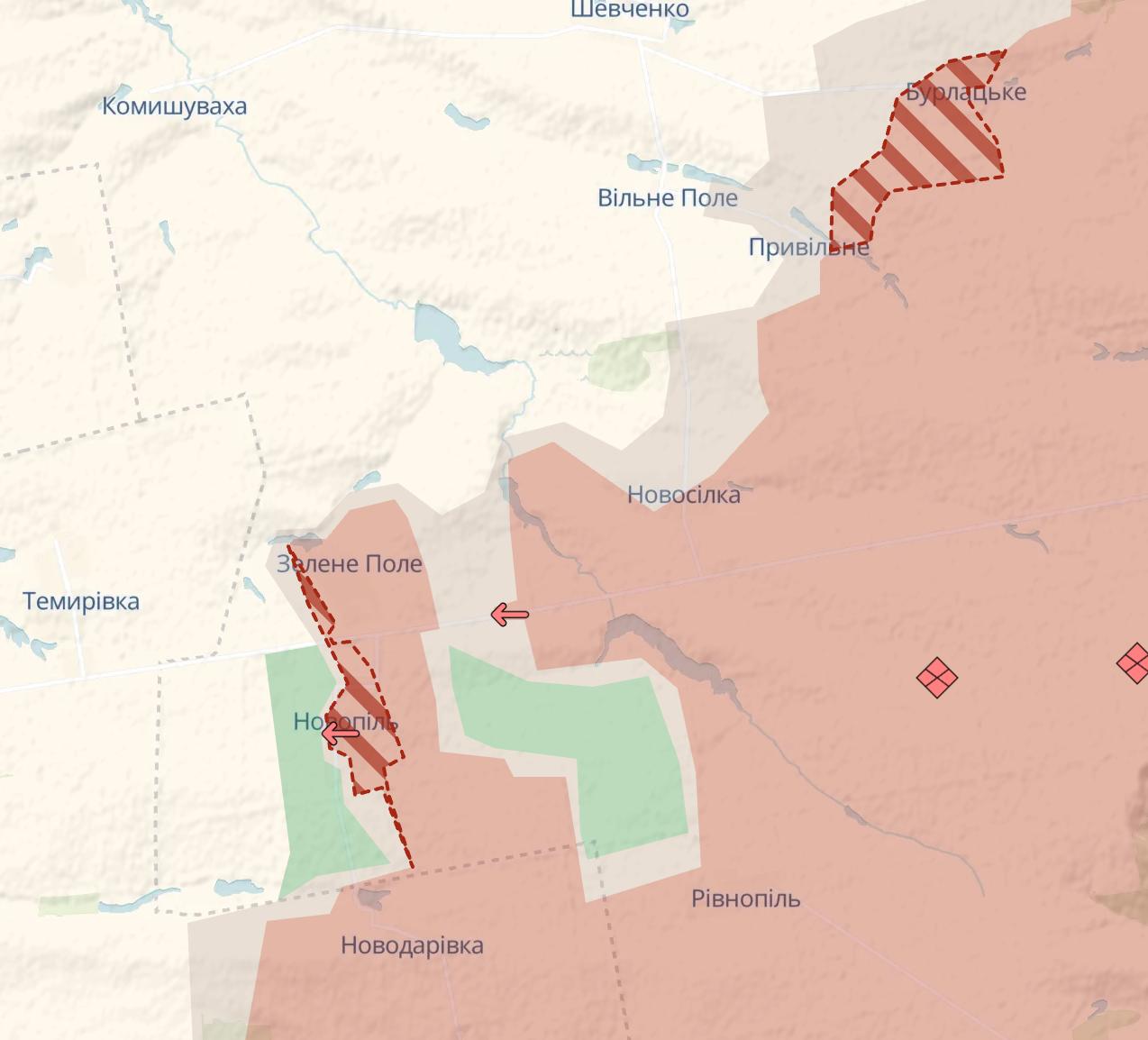 По данным DeepState, российская армия продвинулась на двух направлениях в южной части Донецкой области.