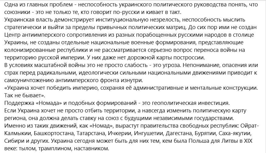Заместитель председателя оппозиционного Конгресса ойрат-калмыцкого народа Владимир Довданов связал задержания и конфликты с «Номадом» с внутренними разногласиями между подразделением и другим формированием — Легионом «Свобода России». По его словам, между ними всегда были идейные разногласия: Легион стремился демонстрировать «хороших русских» для международной аудитории, тогда как «Номад» последовательно выступал за деколонизацию и распад Российской Федерации как империи.