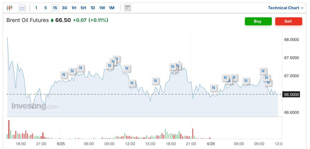 В данный момент Brent снизилась до 66,5 долларов за баррель.