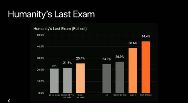 • На тесте «Последний экзамен человечества» Grok 4 выполнил 44,4% заданий — мы уже находимся на полпути к настоящему AGI.
