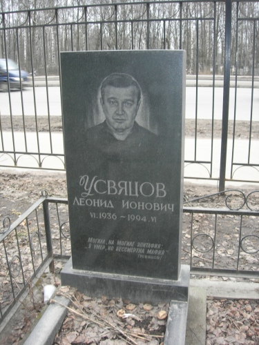На памятнике Усвяцову с обоих сторон высечены стихи, которые покойник сочинил при жизни. Там что-то про баб, “последние две палки в ливерный рубец” и что “я умер, но бессмертна мафия”. Ну … сальные шутки про “лизание Америке” и “обрезание, чтоб больше ничего не отросло” вы все слушаете на пресс-конференциях с 2000 г. Хорошо не в стихах.
