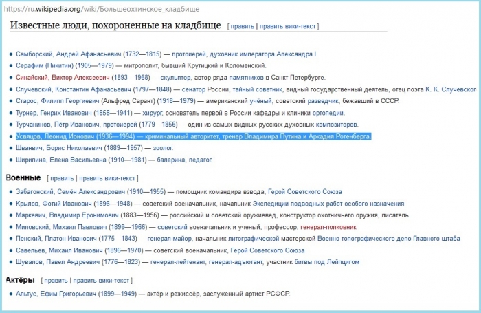 “Усвяцов, Леонид Ионович (1936-1994) – криминальный авторитет, тренер Владимира Путина и Аркадия Ротенберга”.