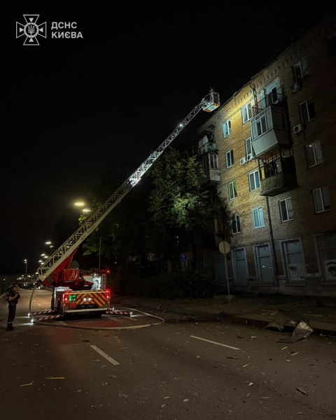В результате налета дронов больше всего пострадал Соломенский район города. Там зафиксировано падение обломков на дома, нежилые помещения, автомобили, попадание в одно из высших учебных заведений.