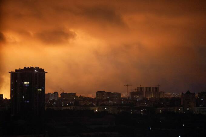 Кадры ночных ударов по Киеву, предоставленные агентством Reuters.