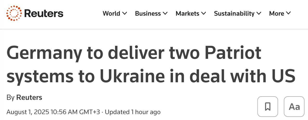 Германия уже "в ближайшие дни" передаст Украине новые пусковые установки Patriot, а затем через два-три месяца — дополнительные комплектующие к ним.