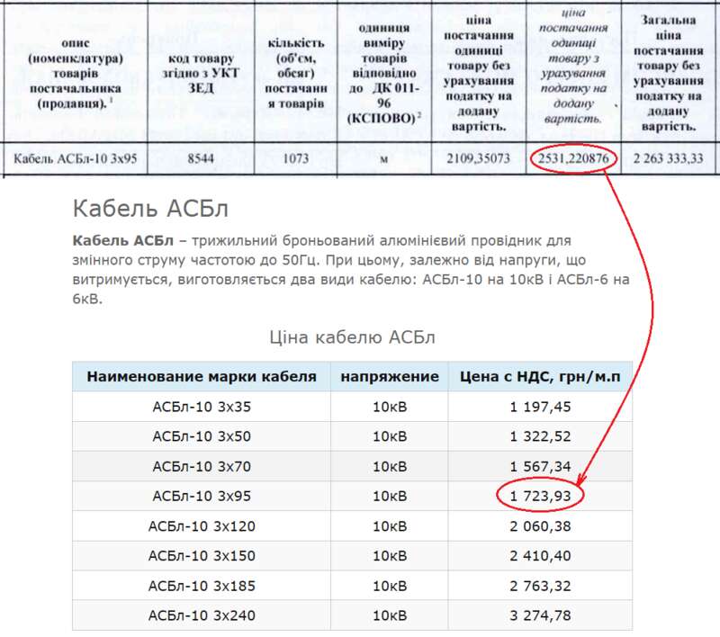 Ранее, в мае АО «Черкассыоблэнерго» заказывало такой кабель с более короткой послеоплатой в течение 30 рабочих дней по 1 872 грн/м, что на 26% дешевле, а КП «Запорожгорсвет» – с еще более короткой послеоплатой в течение 7 рабочих дней по 1 711 грн/м, что на 32% дешевле.