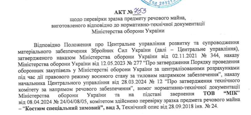 15 000 зимних маскировочных костюмов на 64,82 млн грн по 4 321 грн/компл.