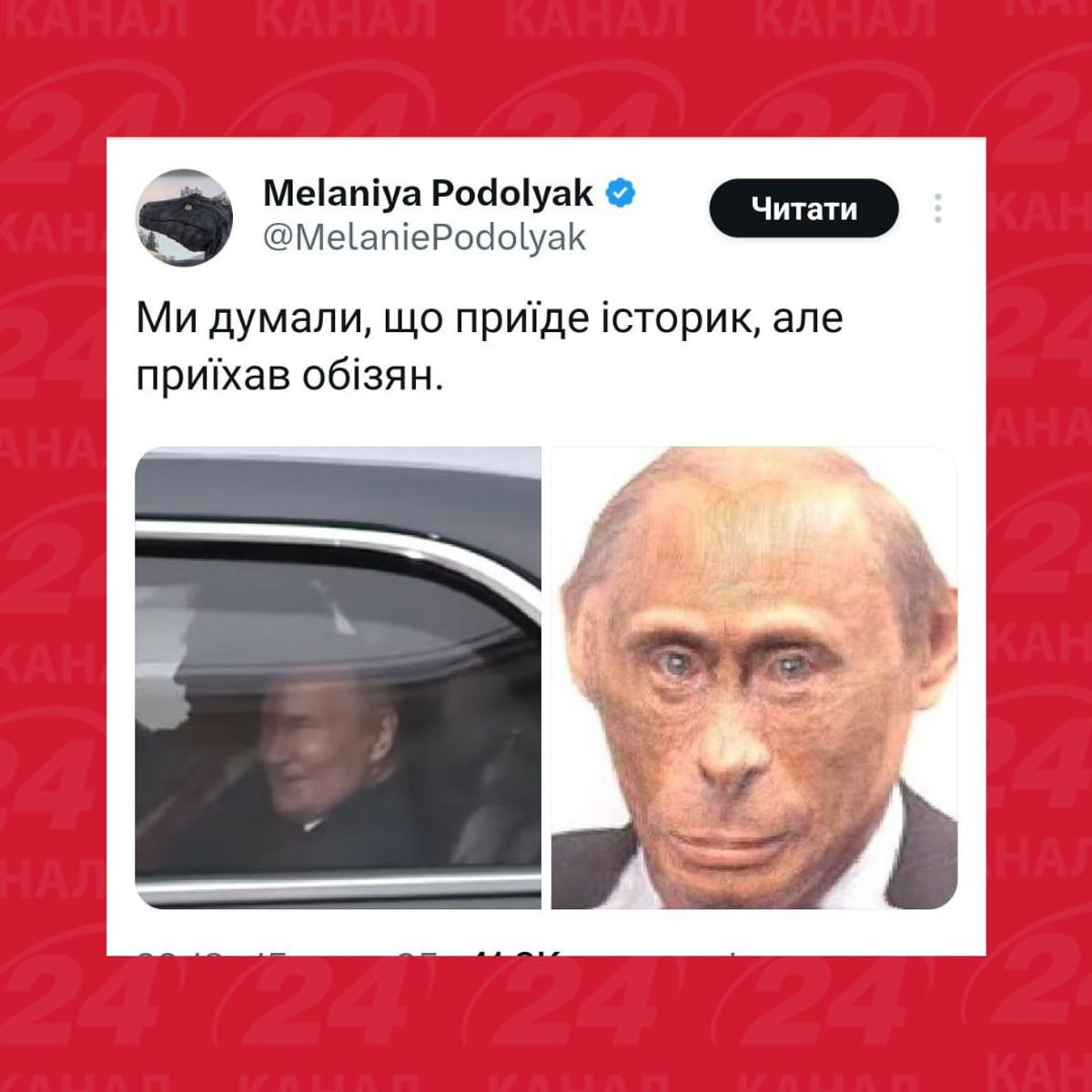 Многих пользователей сети привлекло внимание то, что для Владимира Путина, который является военным преступником и убивает мирных украинцев, приказывая стрелять по гражданским зданиям, встречают с самолета с красной ковровой дорожкой.