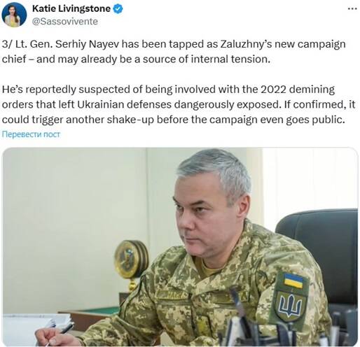 Как она утверждает, руководителем избирательного штаба Залужного назначен генерал-лейтенант Сергей Наев.