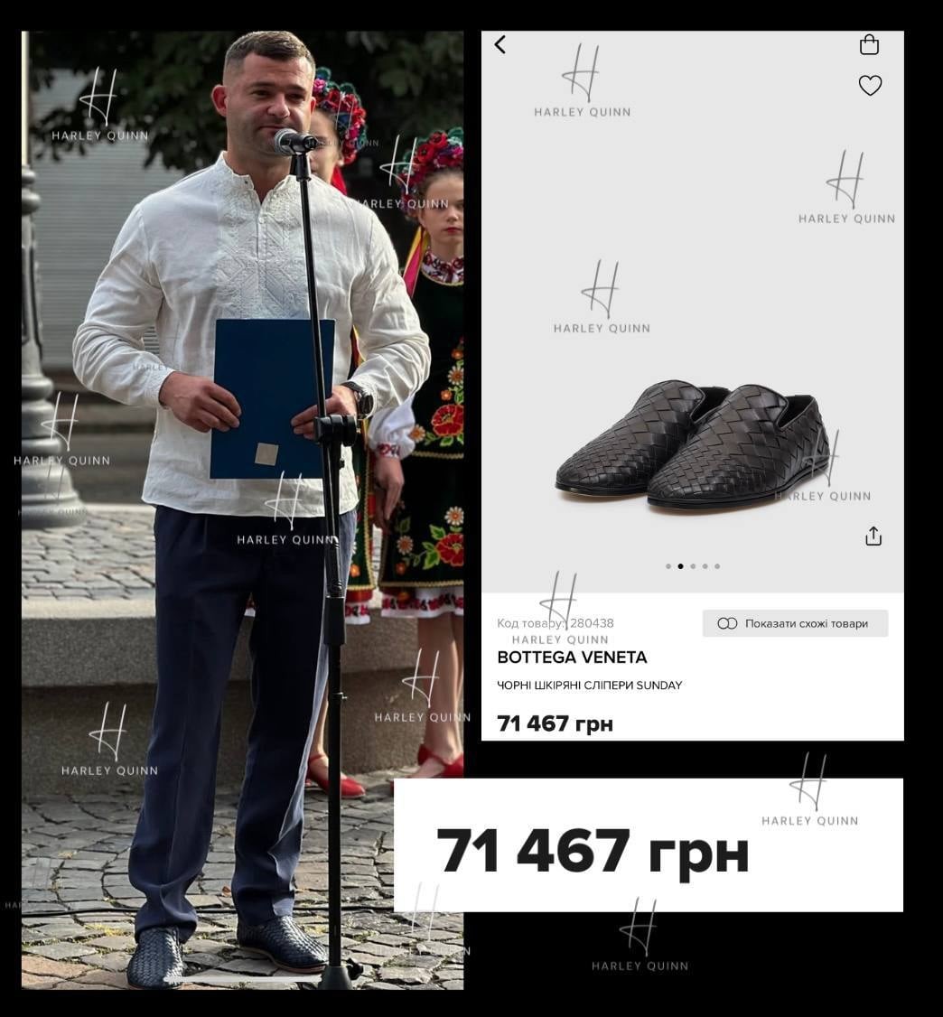 На публичном мероприятии вышиванку мэра Мукачева Андрея Балоги дополнили слиперы Bottega Veneta — за 71 467 гривен.