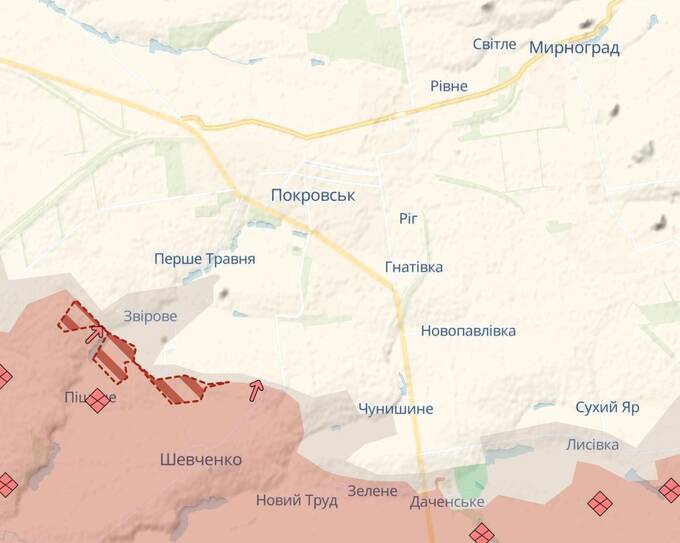 Российская армия продвинулась возле Покровска - в районе Зверево.