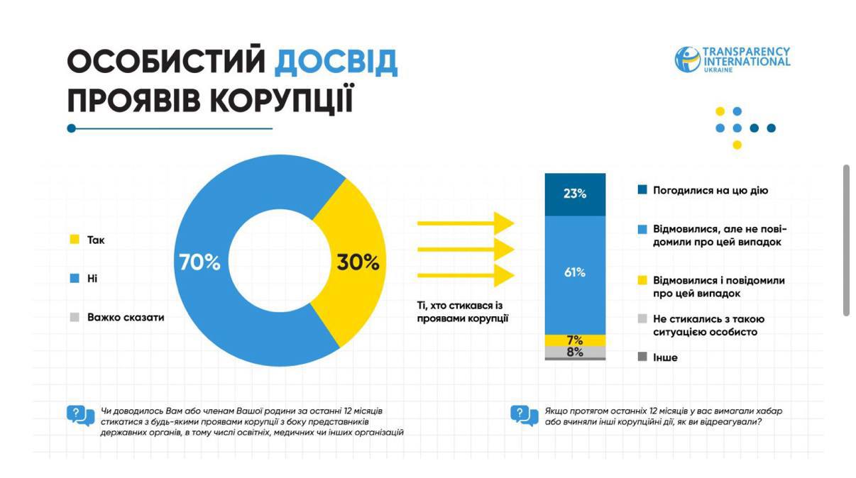 Каждый третий украинец лично сталкивался с требованиями взяток, — исследование Info Sapiens.