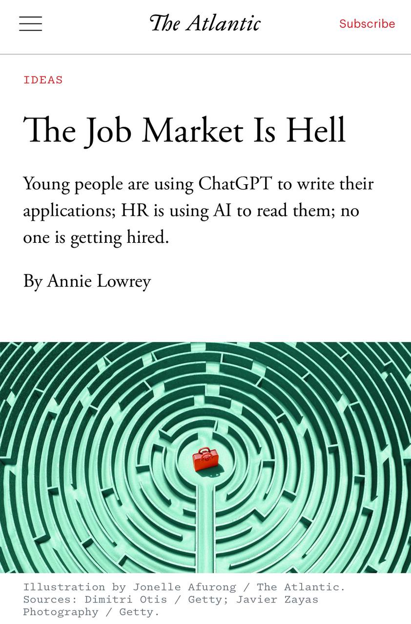 «И так все продолжается по кругу: из-за огромного количества однотипных заявок, составленных AI, работодатели используют алгоритмы для их фильтрации. В итоге процесс поиска работы превращается в ад», — пишет The Atlantic.
