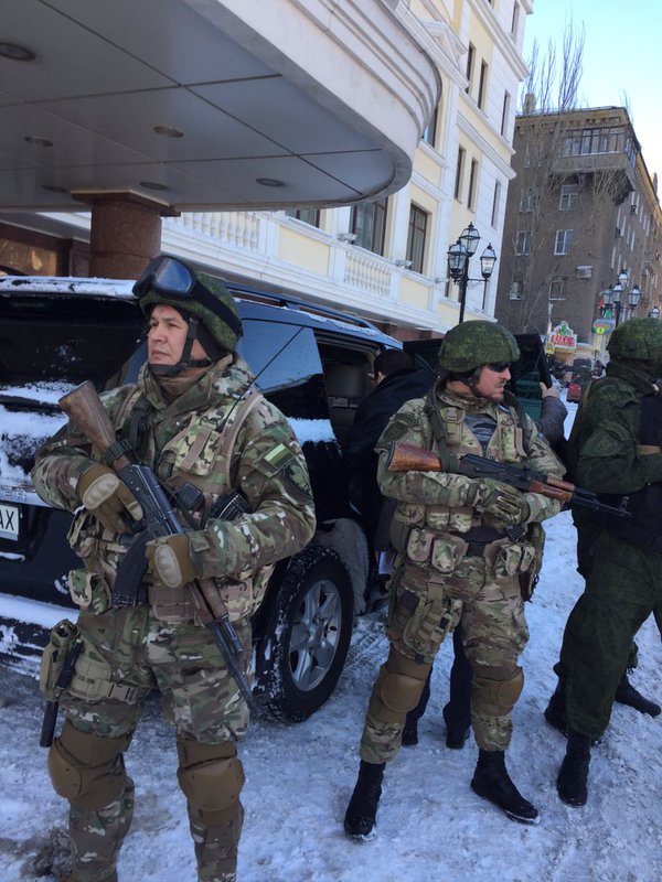 По Донецку Кобзон передвигается на дорогом внедорожнике в сопровождении боевиков.