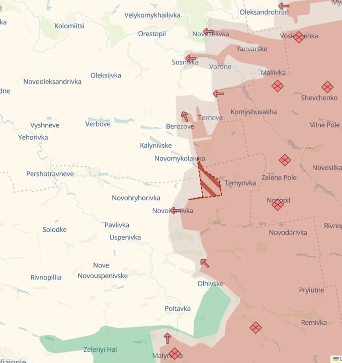 DeepState: Враг продвигается возле Новоивановки на границе Запорожской и Днепропетровской областей