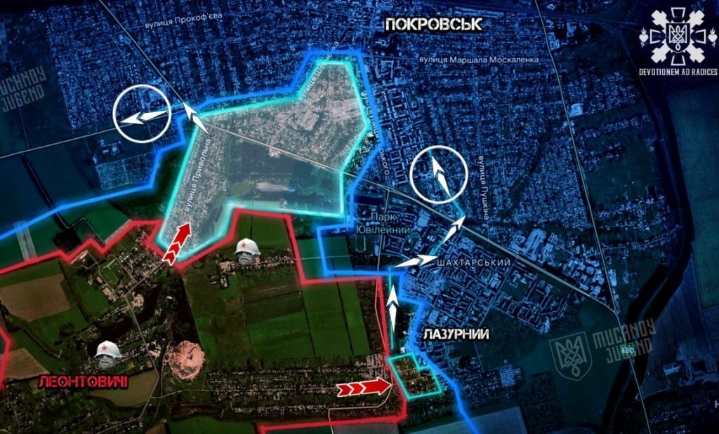 В Покровске россияне давят со стороны Леонтовичей, атакуя вдоль улицы Привольная и через трассу М30.