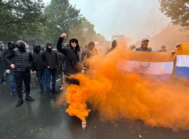 Участники принесли флаги Нидерландов и исторические флаги, которые использовались сторонниками Вильгельма Оранского во время Восьмидесятилетней войны, а в годы Второй мировой войны стали символикой Национального социалистического движения. В настоящее время их часто используют сторонники ультраправых взглядов.