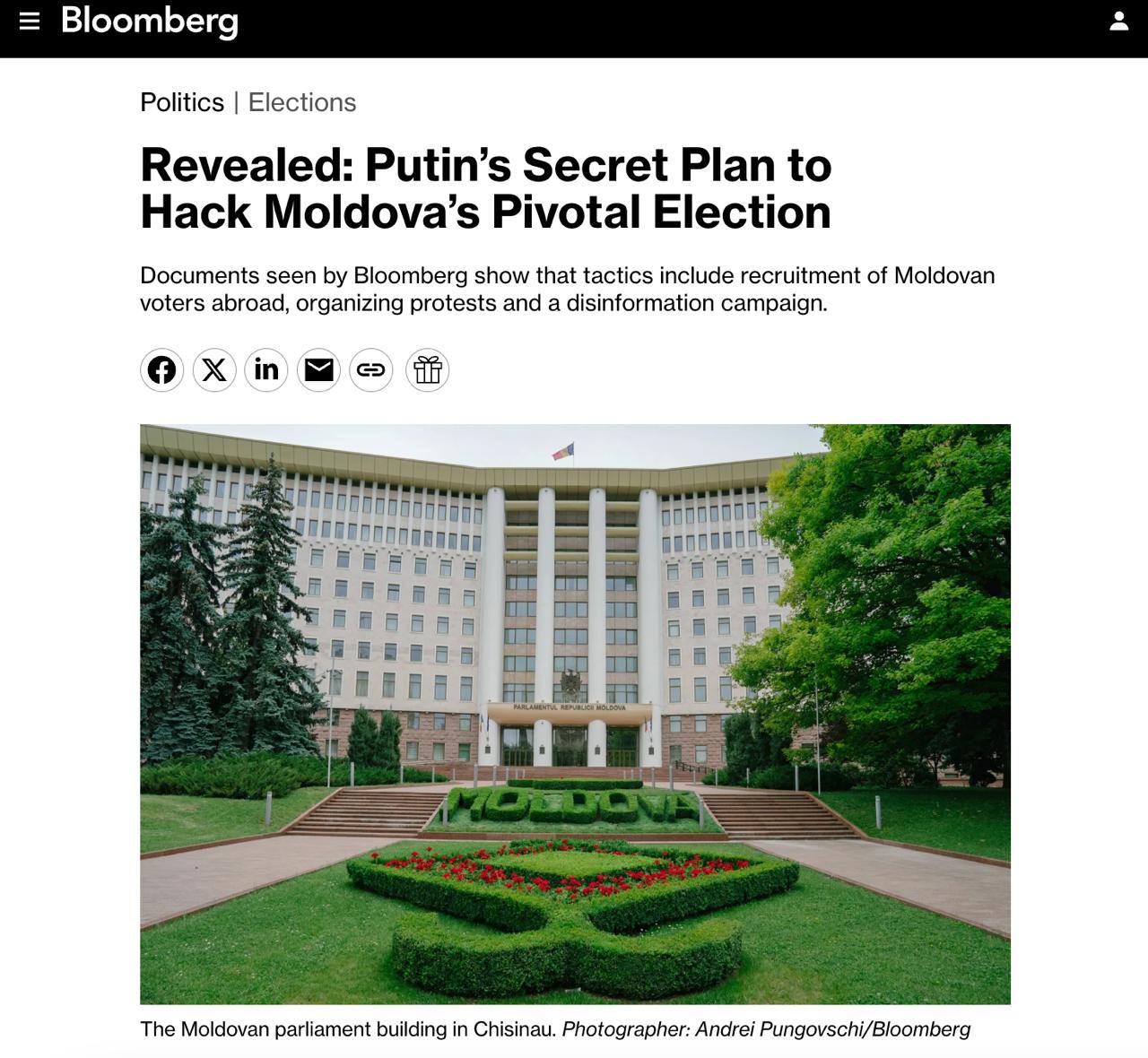 Bloomberg получил документы, разработанные Москвой, которые касаются вмешательства в выборы в Молдове.