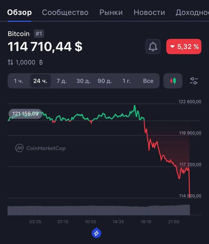 Курс биткойна стремительно усилил падение после того, как Дональд Трамп объявил о введении 100% пошлин на импорт всех товаров из Китая.