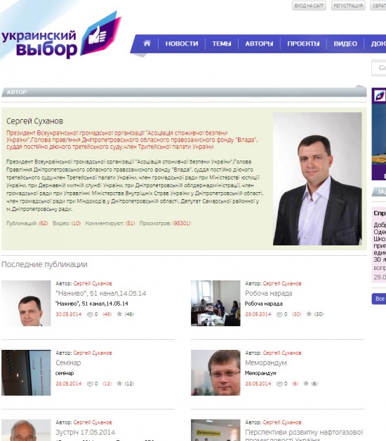 Также стоит обратить внимание, что Сергей Суханов является активным автором официального сайта движения «Украинский выбор» Виктор Медведчука.