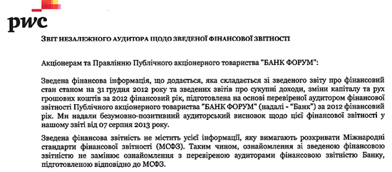 "Форум" - единственный крупный банк в стране, который до сих пор не опубликовал финансовый отчет за 2012 год в полном объеме.