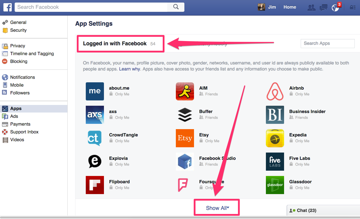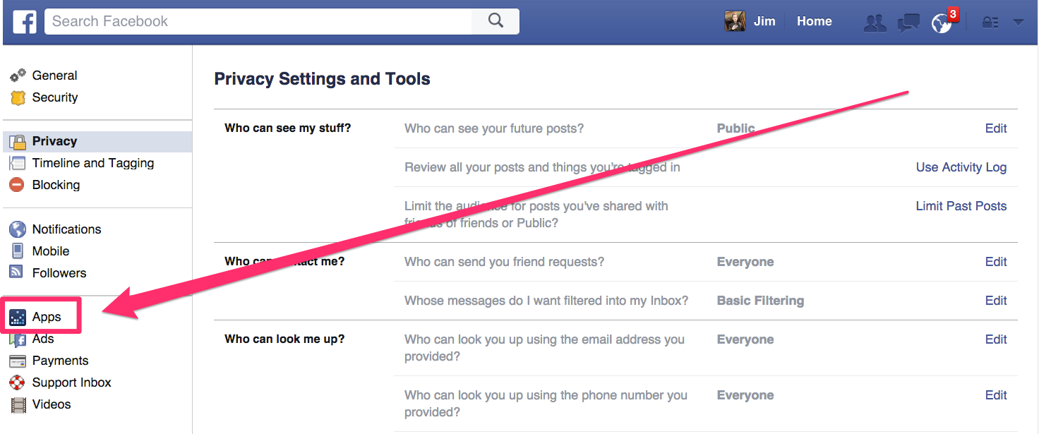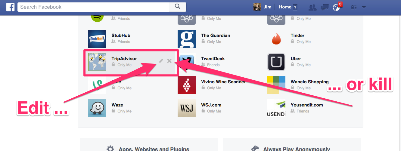 2. Зайти в список приложений, которыми вы пользуетесь в Facebook и отредактировать его.