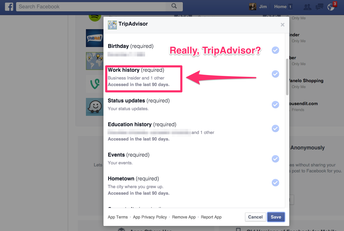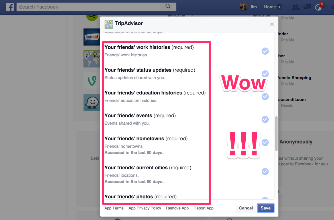 А еще TripAdvisor может копаться в карьерных делах моих друзей и вообще все о них знает. Нехорошо, TripAdvisor!