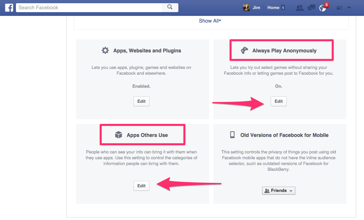 А теперь перейдем к более тонким настройкам. Тут у вас чуть больше возможностей редактирования, но мы поговорим о двух наиболее важных. Вы можете пользоваться Facebook для того, чтобы заходить в игровые приложения и играть анонимно. А еще вам надо кликнуть на кнопку «Приложения, используемые другими».