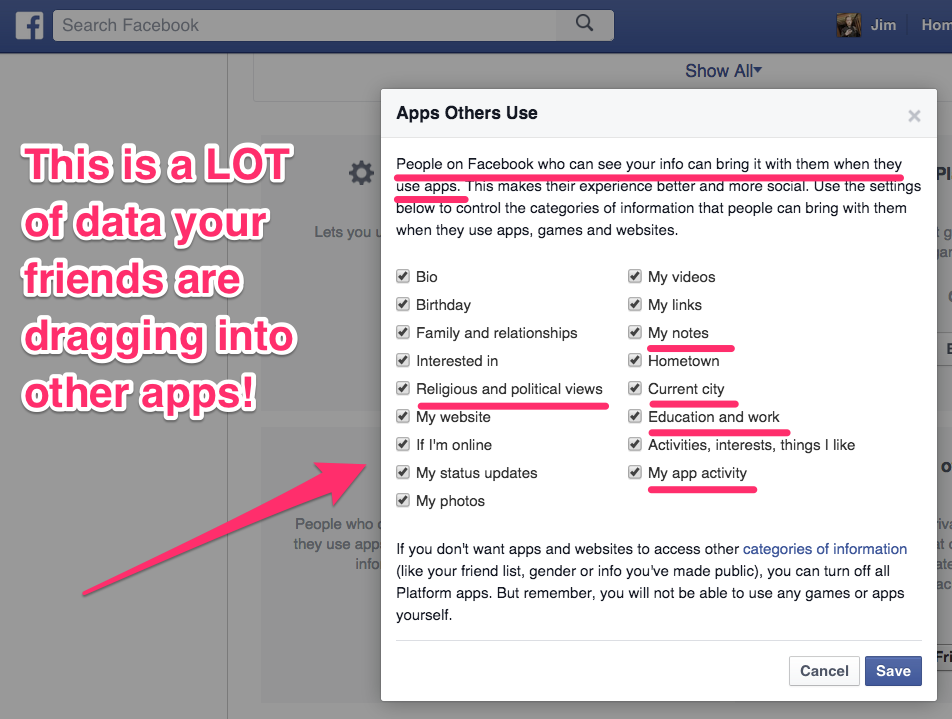 Большинство людей забывают о том, что, загружая приложения или заходя на сайт в интернете под своим Facebook-логином, они дают различным компаниям доступ к своему профилю. А в нем – много личных данных, в том числе email, номер телефона, история карьеры и даже текущее местонахождение. Также многие люди не осознают того, что, поделившись любыми этим данными со своими друзьями, они открывают доступ к этим личным данным и приложениям, которыми пользуются друзья.