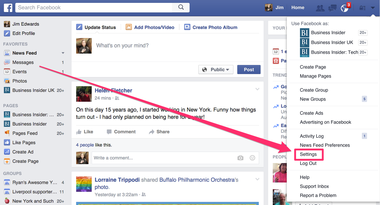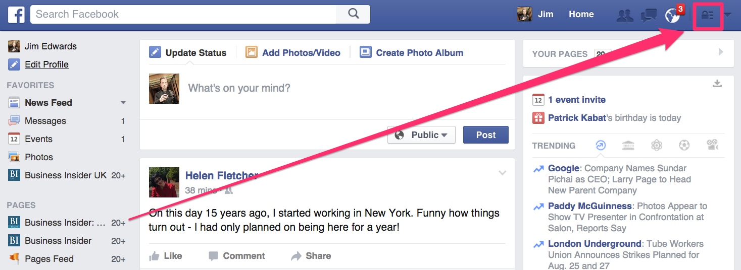 Кликните на стрелочку в правом верхнем углу странички Facebook.